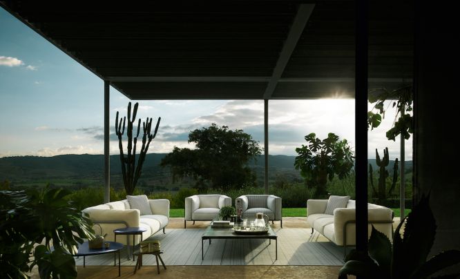 From B&B Italia Outdoor collection's precision-engineered aluminium to Edra's nature-inspired textiles, the two top brands showcase timeless Italian design outdoors with materials made to last.