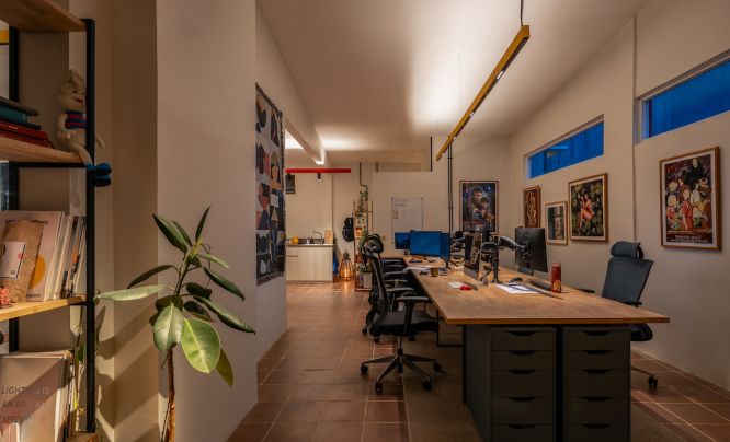 Studio Nimmersatt’s Bali office is a spirited fusion of industrial, bohemian, and retro influences – brought together with colour-rich LS CUBE switches from JUNG.