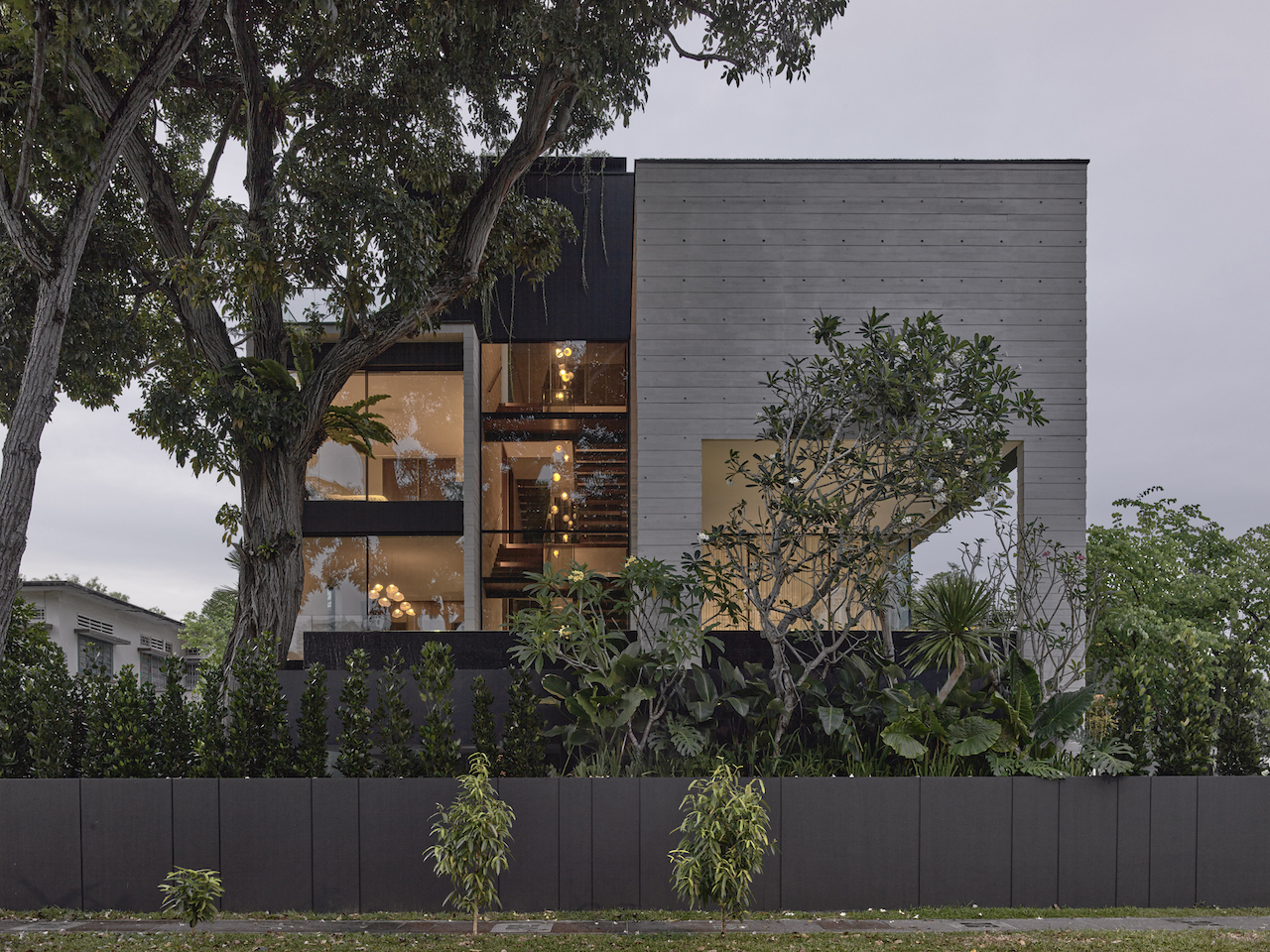 “The tree at the front of the house is a 13m-high Tabebuia rosea, also known as the Trumpet tree or Singapore Sakura. This tree was the sole one originally on the property,” says Maria Arango, who founded ArMo Design Studio together with Diego Molina. This tree became the driver for the programmatic and formal aspects of the house. The clients wanted to maximise the Gross Floor Area (GFA) of the house for future proofing as well as to work within a current limited budget.