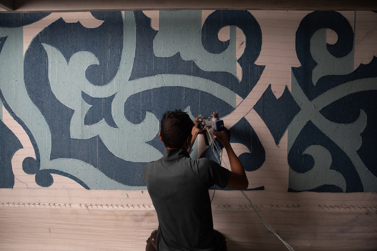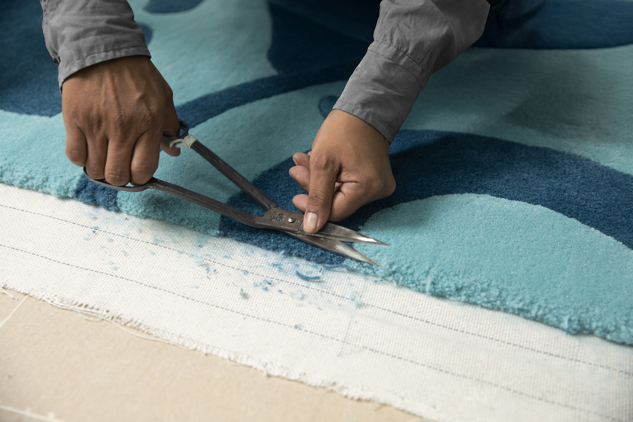 The labour is exacting, but what distinguishes the finished piece is not perfection in the industrial sense, but in the variation. “What makes it special is that every piece carries the mark of the person who made it,” he continues. “The small nuances in texture or tone are what give the rug its character. That human element is something machines can never replicate.”