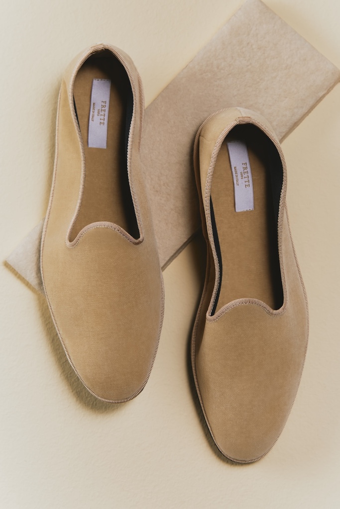 Velvet slippers and loafers with flexible soles offer effortless style and comfort. Their pared-down design and soft structure make them ideal for relaxed, modern living.