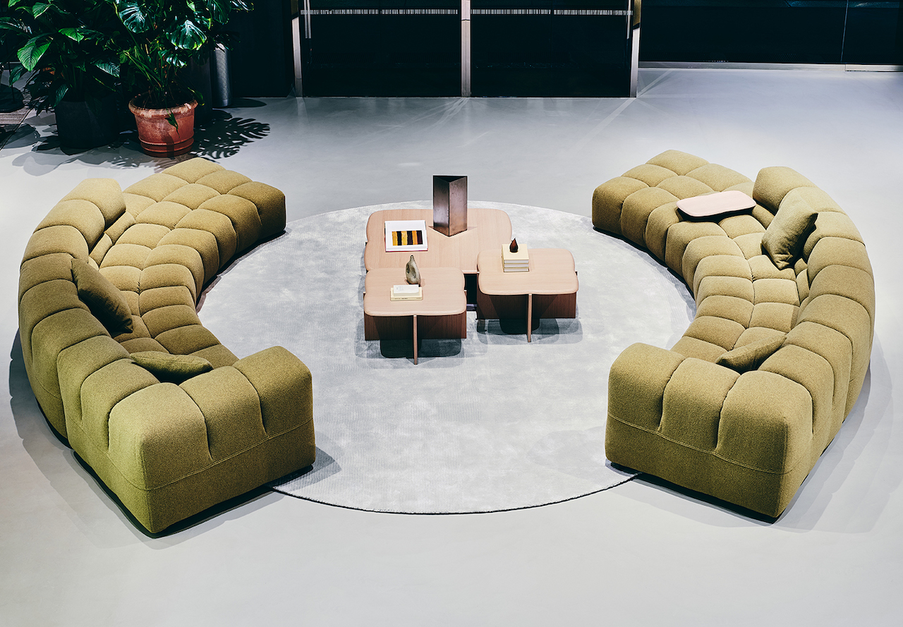 The Tufty-Time 20 seating system is composed of 14 modules, enabling versatile, curvilinear compositions. The curved module represents a major innovation, allowing for organic layouts that are particularly suited to both residential and contract environments (such as hotels and offices) where face-to-face interaction and a sense of conviviality are encouraged.