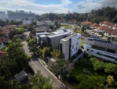 As mentioned, the plan and section integrate natural elements such as green pockets of spaces and trees so that nature is brought inward, enlivening the white shell. A key feature in the house is the stairwell, composed of various elements including green spaces. Aside from a transitional device, it is also furniture, garden and a spatial connector due to a design that expands the landings and spreads out the flights. At the base, the steps extend to become seating while daylight washes in from a skylight above. A jubilant sense of space and light is felt as one traverses up and down.