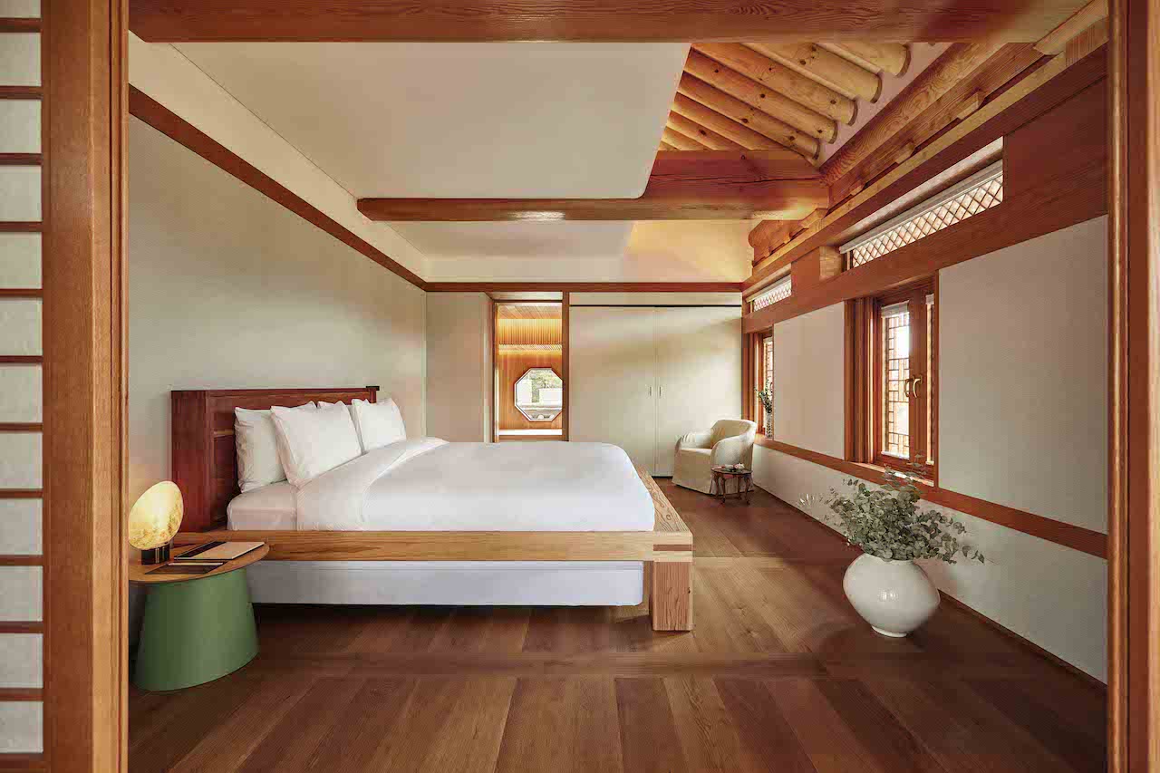 Kim was also responsible for the project’s furniture design. “The selection of materials for the furniture was based on considerations of tradition, functionality, and aesthetic harmony. A key focus was finding warm materials that complement the hanok atmosphere. At the heart of this approach lies wood, which gains depth and elegance over time,” he says.